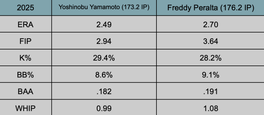 He had his worst outing of the season when he faced the Brewers back in July, as they jumped on him early forcing him out of the game after getting just two outs. Most notably, Frelick doubled and Andrew Vaughn homered, while Turang and William Contreras walked. He allowed four hits and two walks, in a similar way to his outing against the Phillies, where he just didn’t have it early. The Brewers will gladly take their walks if you’ll issue them, which has been an issue for Yamamoto at times this year. Separately, the Brewers had the second lowest whiff-rate on splitters this year at just 28.4%, trailing only the Toronto Blue Jays (27.3%), two teams that excel at putting the ball in play.