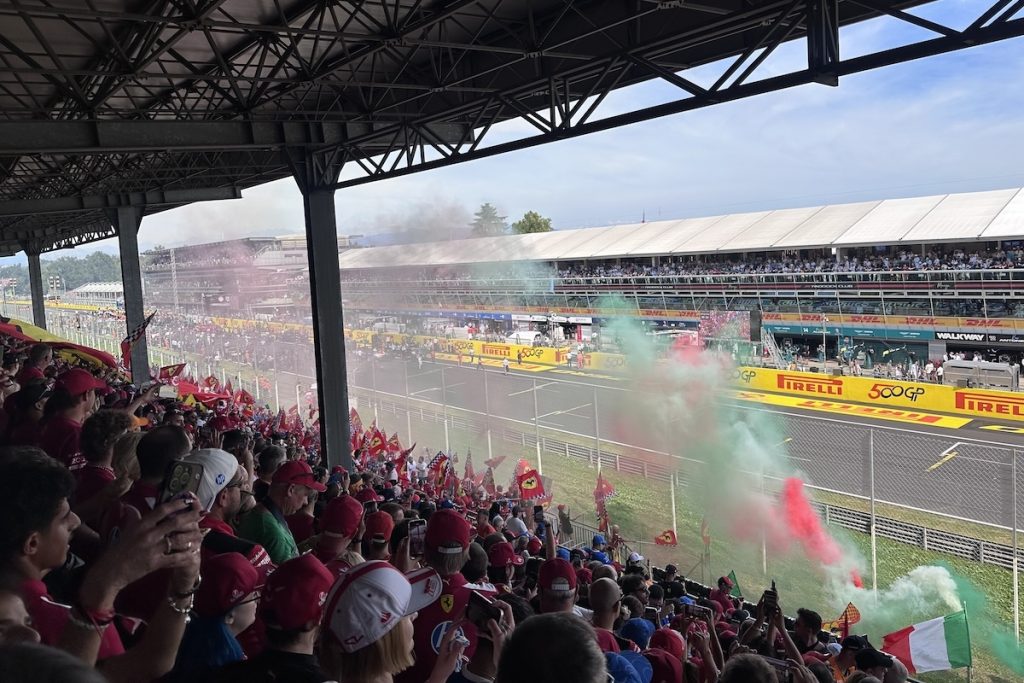 Watching the pre-race buildup was a cool experience. Seeing all the stuff I’ve seen on TV over the years, like the giant flags draped down over the crowd and seeing the drivers and teams prepare the cars before the race made it very exciting. The only downside was that the roof of the grandstand blocked the Frecce Tricolori flyover by the Italian airforce before the race. After the race, fans were very eager to get onto the track. Some were climbing the 20-foot high trackside fencing, others were squeezing through the small openings for marshals. The majority used the dedicated entrance points, of course! It wasn’t chaos, but not far from it! I was happy to have a great view from my grandstand.