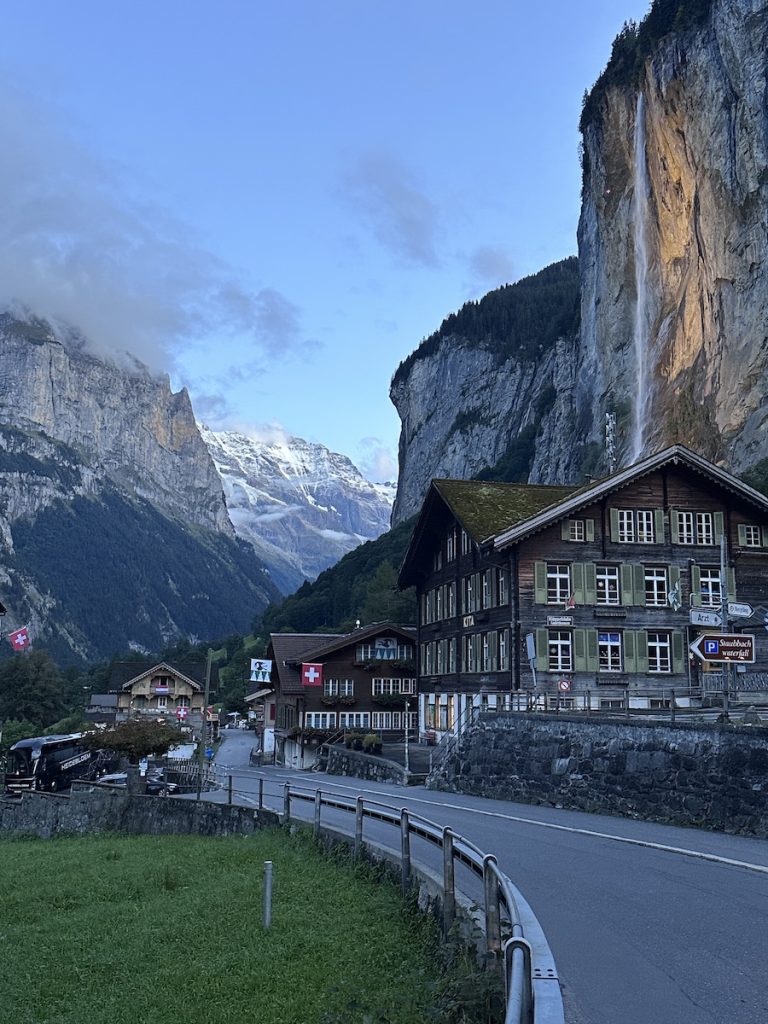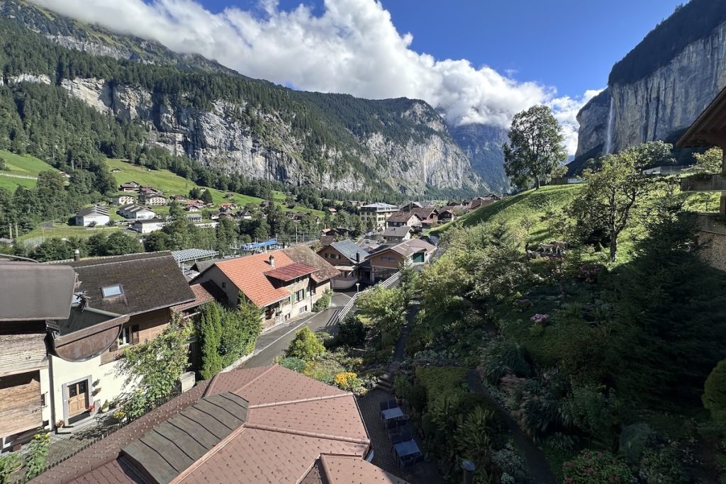 The drive was pretty straight forward, offering some stunning views and lots of switchbacks as we navigated through the Alps. We stayed at Hotel Silberhorn in Lauterbrunnen, and our room had a view of the iconic Staubbach Falls. Lauterbrunnen was one of the most surreal places I’ve ever been. It felt like being in a movie, with stunning mountain views all around. Switzerland is not cheap, and to top it off, we were in a popular tourist town. One day, we took the train to Murren, which has views of Jungfrau, one of the highest peaks in Europe. Murren has some shops and a few restaurants to enjoy some food and drinks with a backdrop of stunning mountain views.