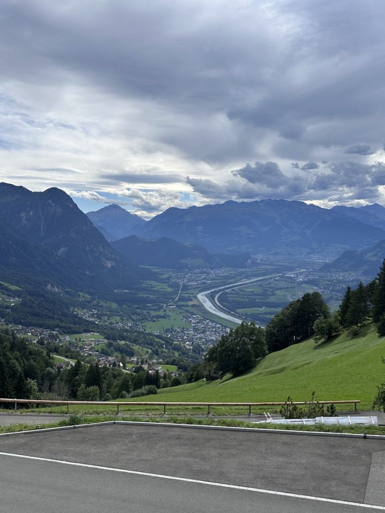 On Thursday, before heading to Como, we drove across Switzerland to Tannenboden, to ride the Flumserberg toboggan run. It’s a ride on a rail mounted sled that zooms down the mountain, and it’s one of the longest and fastest in Switzerland. You take a ski lift to the top and the ride down lasts a few minutes. After the toboggan run, we wanted to tick off a new country, so we popped over to Lichtenstein and had lunch at a mountain top restaurant called Berggasthaus Masescha, which also had an incredible view. After lunch, it took us about three hours to drive to Como.