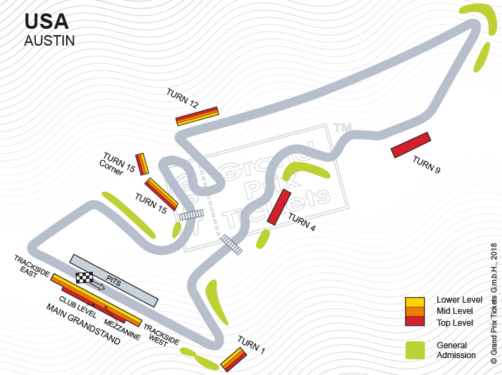 Grounds Passes: Also known as General Admission (GA), these are cheapest 3-day tickets. They provide access to the circuit and the circuits, but without a reserved seat. With lots of elevation changes at COTA, the views can be very good views. The downside is that with much higher attendance at the race in recent years, GA areas can become very crowded, especially on race day.