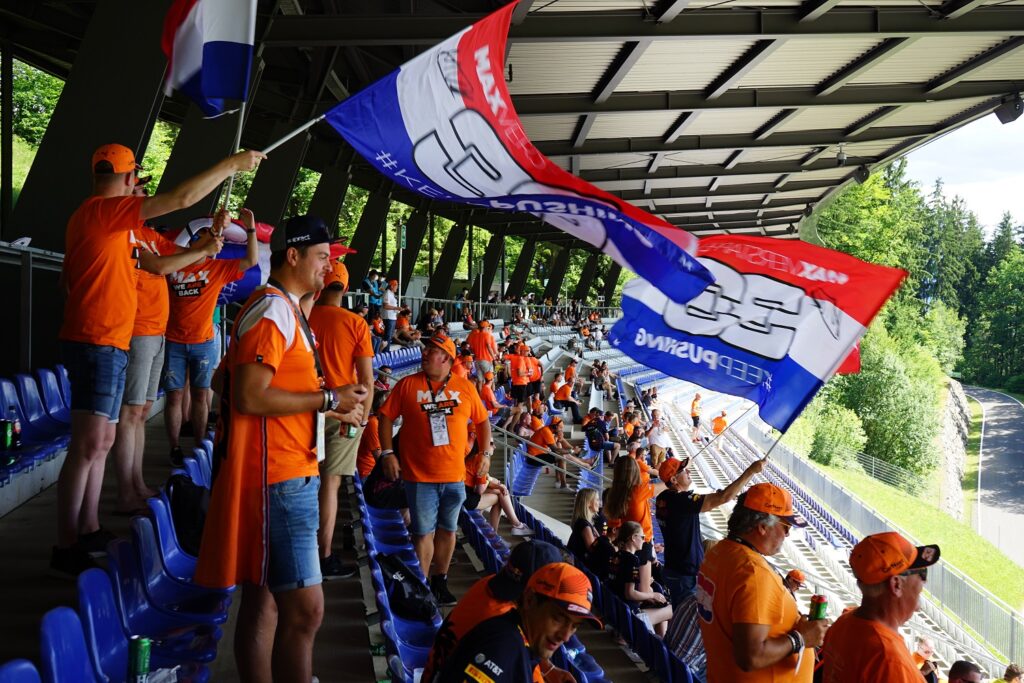 Situated in the middle of the circuit between turns 5 & 6, close to the big bull. The grass area here (close to the track but raised above the catch fencing) is a good place to practice your panning photography shots. The Middle grandstand at the Red Bull Ring is sold exclusively via Max Verstappen’s website.