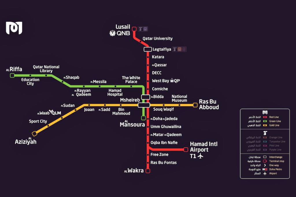 Doha’s metro service, which opened in 2019, also operates from the airport, linking the airport to some of the city’s biggest tourist attractions. The three metro lines (Red, Green and Gold) cover a total distance of 75km, with 37 stations across the three routes.