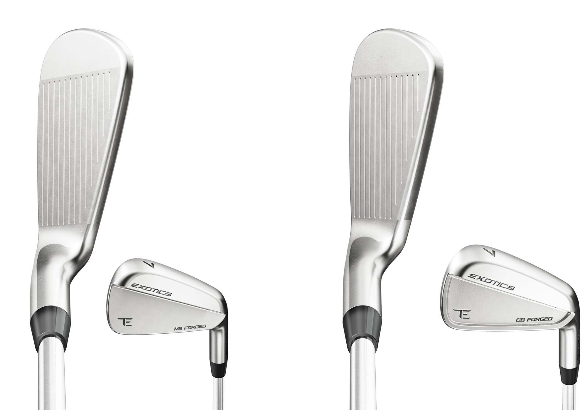 Both are forged from a single billet of 1025 carbon steel and then CNC-milled into their final shapes. The Exotics MB is a modern muscle back, while the CB is its more forgiving, cavity-backed brother.
