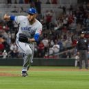 I might not have been more shocked by any spring training development than when Ohtani returned from the World Baseball Classic and, four days later, threw 61 pitches after not having picked up a ball in a structured game since October … and looked darned good doing it. He’d throw another 86 pitches six days after that, generating a 40% whiff rate on swings in his two outings and finishing with 15 strikeouts out of the 34 hitters he faced — and he’d throw another 87 in his regular-season debut on Tuesday, totaling six shutout innings of one-hit baseball worth 22 fantasy points.