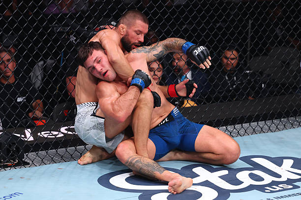 It was all Gamrot in the opening round, who put Ribovics on his back early and kept him there for the majority of the stanza. Ribovics stayed on his feet long enough to land a solid right hand in the second, but that merely prompted Gamrot to shoot in for another successful takedown.